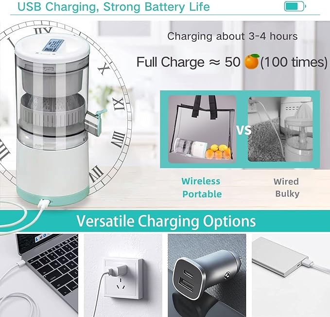 π High Efficiency Juicing π: Experience 360-degree omnidirectional three-dimensional juice extraction with superior efficiency and effective separation of pulp. This juicer meets all your juicing needs. It's USB rechargeable, cordless, and portable, allowing you to enjoy fresh juices anytime, anywhere, with confidence. π₯€π