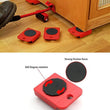 Revolutionise your living space with this toolset. It includes 1 furniture lifter and 4 mover pad sliders, offering a 360-degree rotation for secure furniture and appliance movement. From sofas to fridges, tables to beds, our durable steel and impact-resistant ABS plastic rollers have you covered.